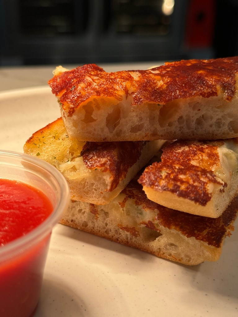 The time has come for us to say ‘goodbye’ to our Pasta Chips and ‘hello’ to Cheesy Bread. It’s a new era at POPS. Crusty ciabatta bread with roasted garlic and herb spread topped with mozzarella cheese then griddled to create a cheesy crust like you’ve never seen before! A little bit of our Palermo’s Red (tomato sauce) on the side for dunking. Our Cheesy Bread is offered as starter and a piece will accompany each of our pasta dishes to create the perfect last bite.